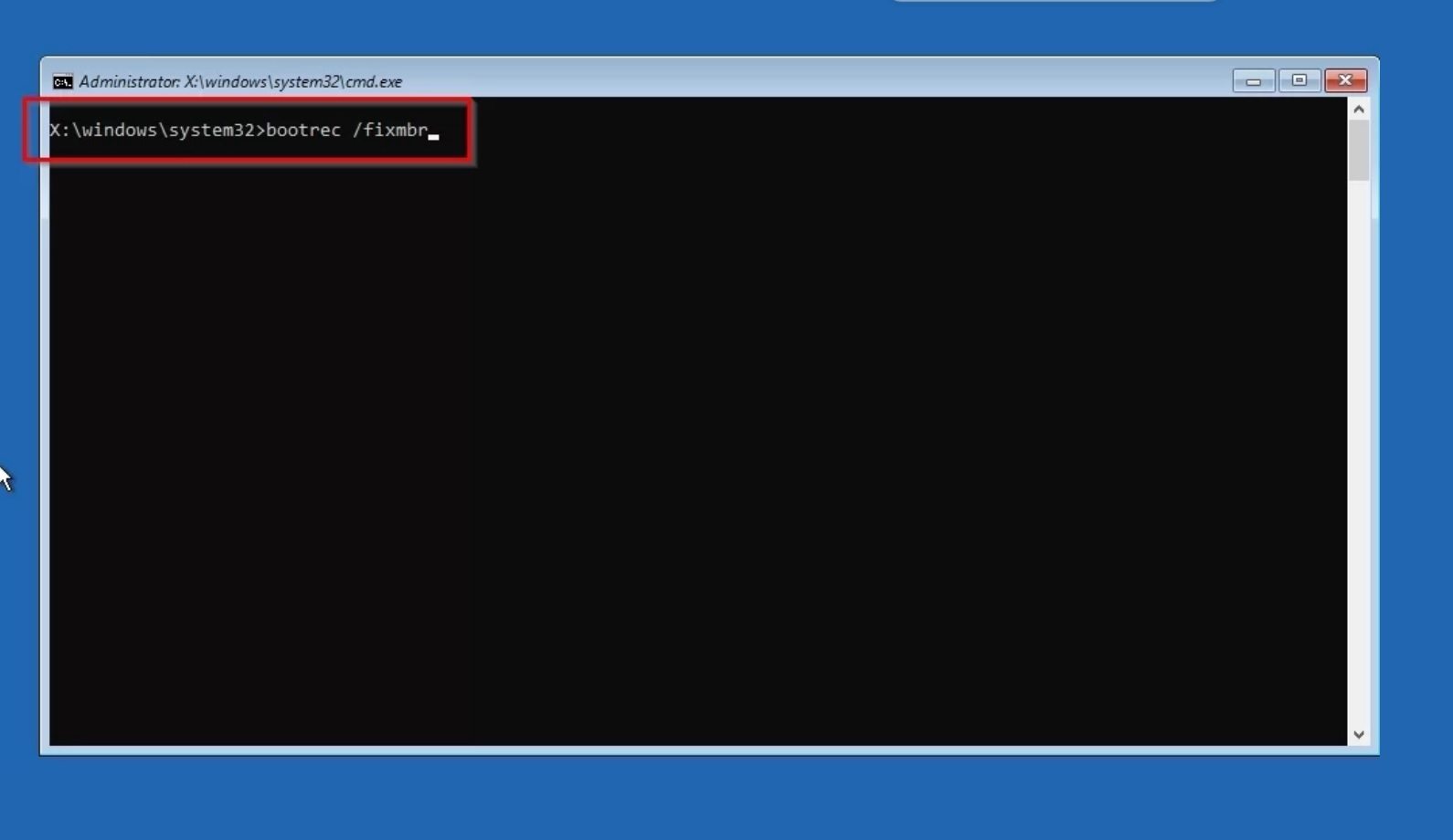 bootrec /fixmbr, aby naprawić MBR. Wyjdź, a następnie uruchom komputer ponownie, aby sprawdzić, czy problem został rozwiązany. - Jeśli to nie zadziała, spróbuj poleceń