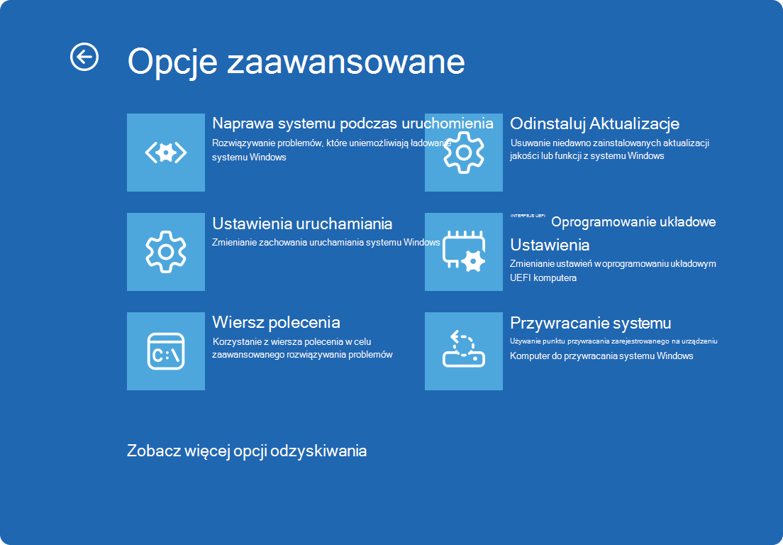 - Wybierz „Opcje zaawansowane” > „Naprawa systemu podczas uruchomienia”.