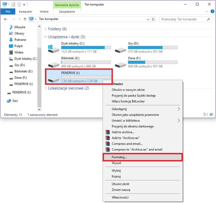 Opcja A: Formatowanie karty SD w formacie RAW za pomocą Eksploratora plików