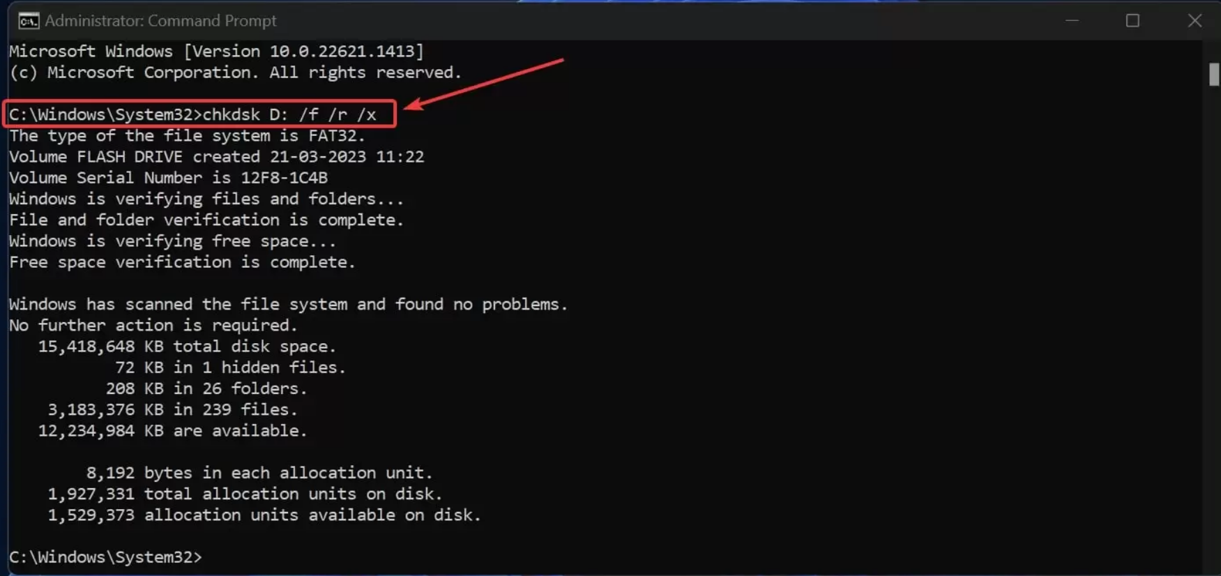 attrib -h -r -s /s /d E:\*.* - Zmień literę dysku, aby odpowiadała literze pendrive’a na Twoim komputerze.