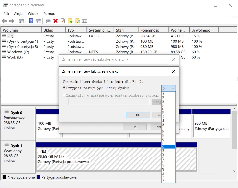 Oto jak przypisać literę dysku w zarządzaniu dyskami: