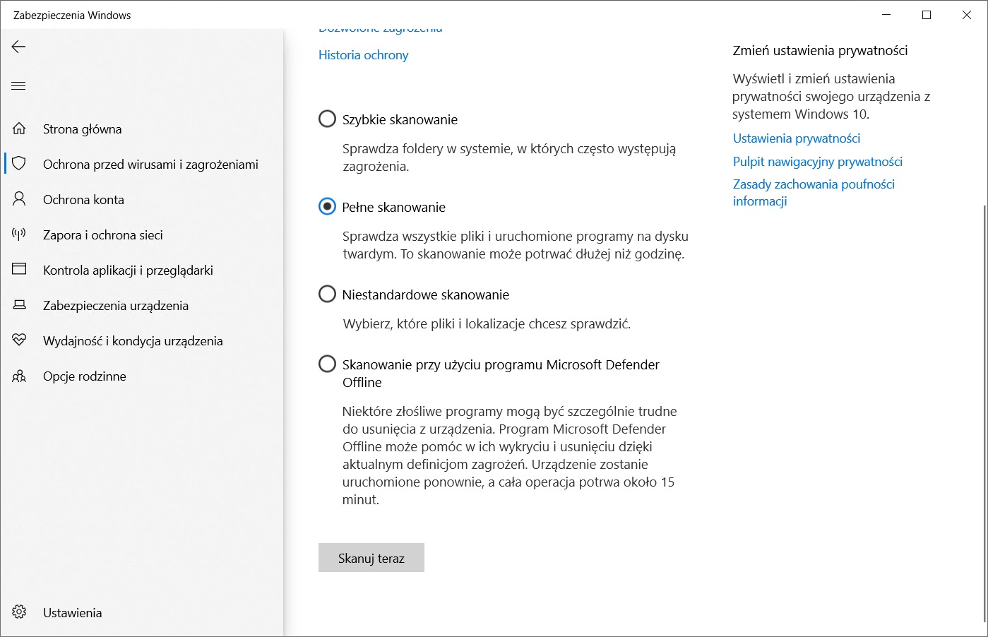 Aby przeskanować swoje urządzenie za pomocą Windows Defender, wykonaj następujące kroki: