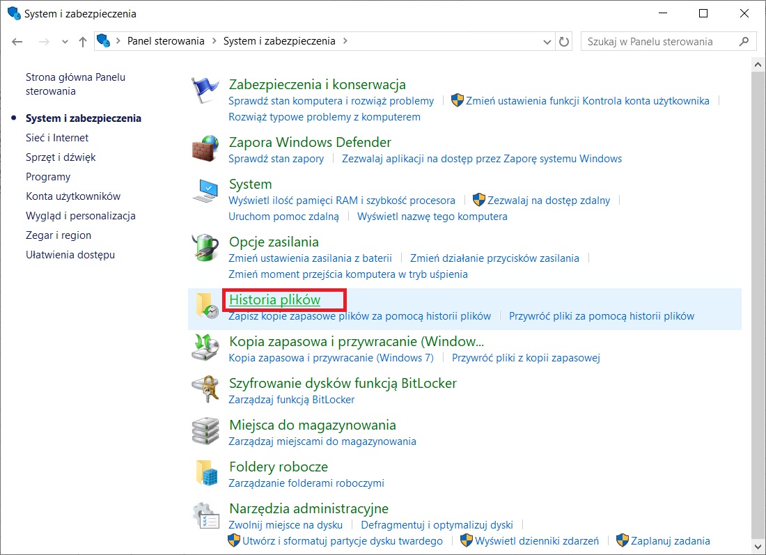 Aby odzyskać pliki przy użyciu historii plików, wykonaj następujące kroki: