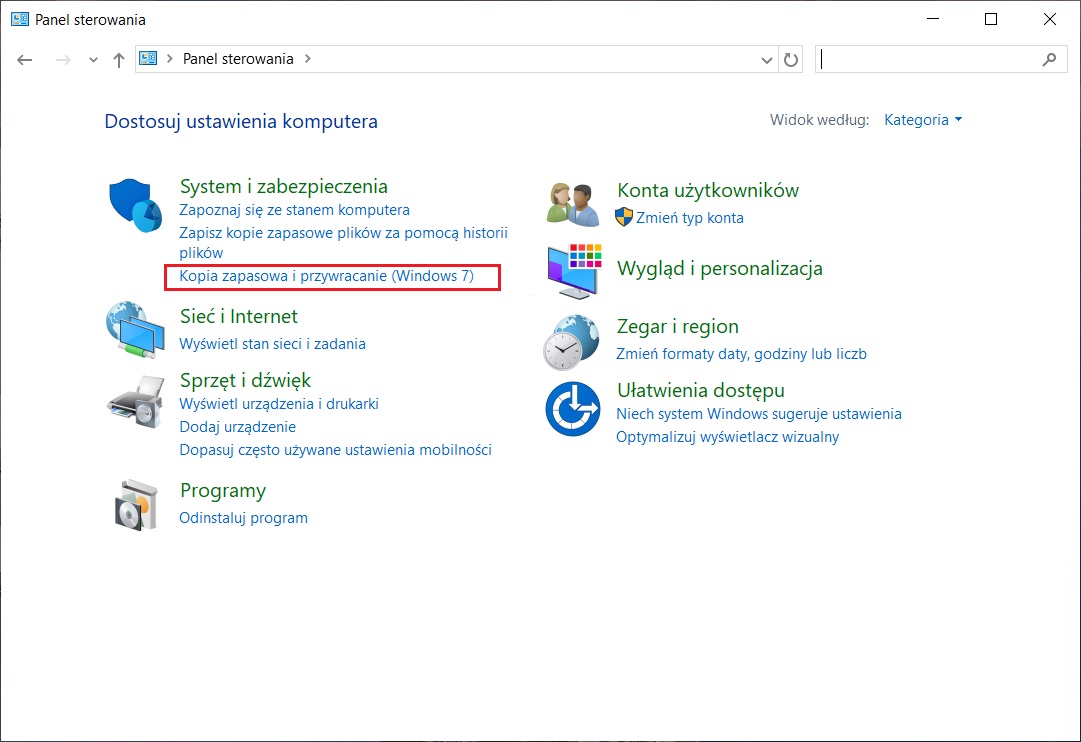 - Kliknij „Kopia zapasowa i przywracanie (Windows 7)”.