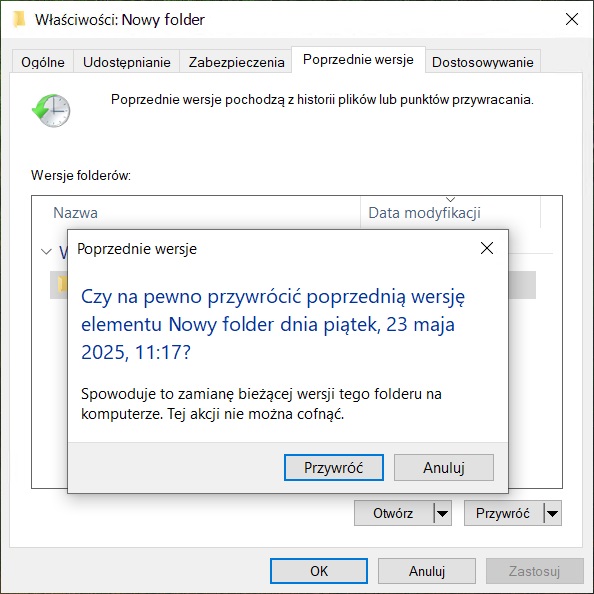 Istnieje inny sposób na odzyskiwanie plików usuniętych z kosza. Metoda ta wykorzystuje funkcję przywracania, aby uzyskać dostęp do wcześniejszych wersji plików. Jak odzyskać historię?
