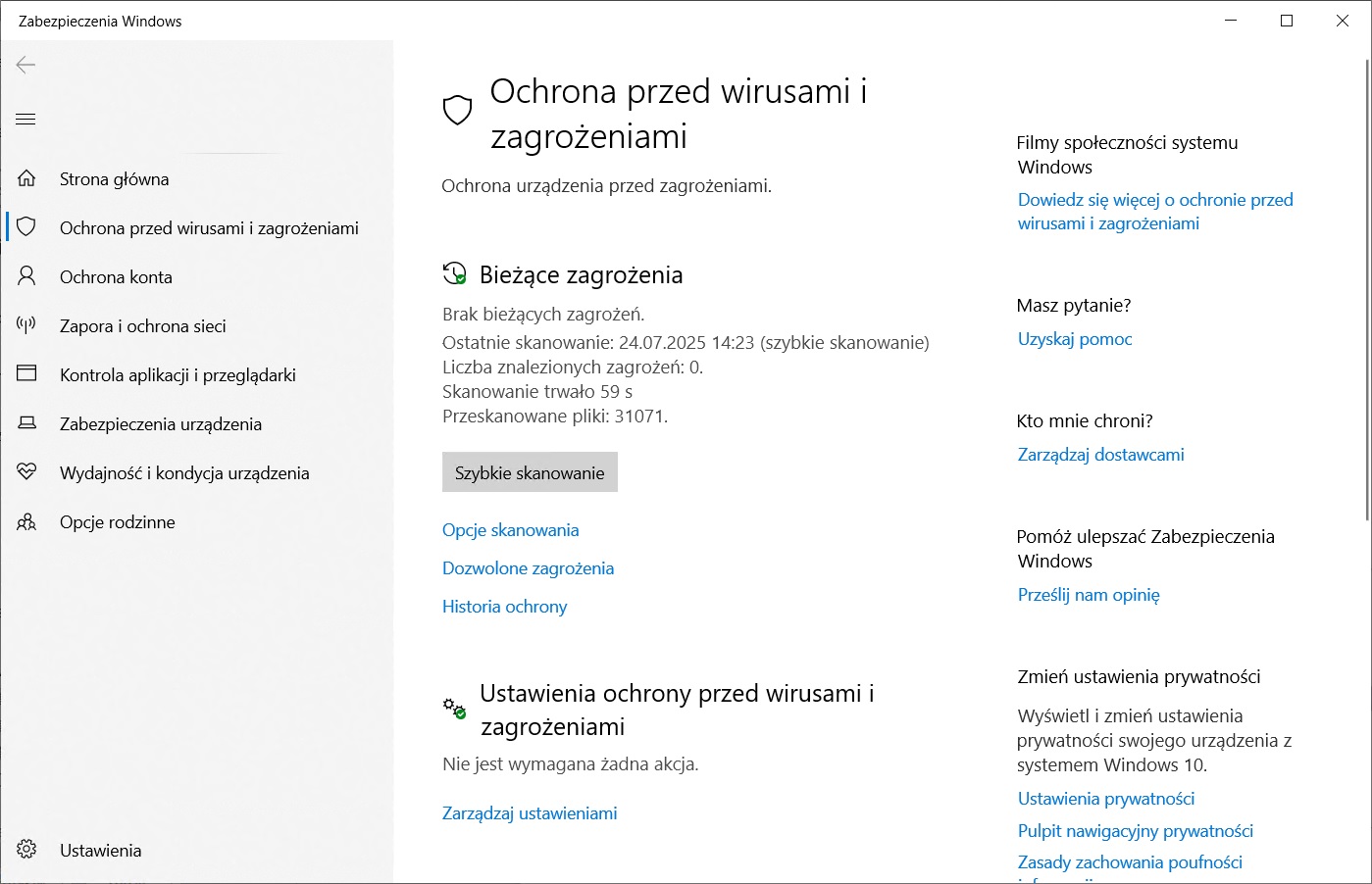 - Wybierz opcję „Ochrona przed wirusami i zagrożeniami”, a następnie kliknij „Historia ochrony”.