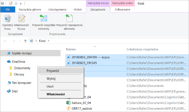 - Wybierz element, który chcesz przywrócić, i podejmij odpowiednie działania, na przykład kliknij „Przywróć”.