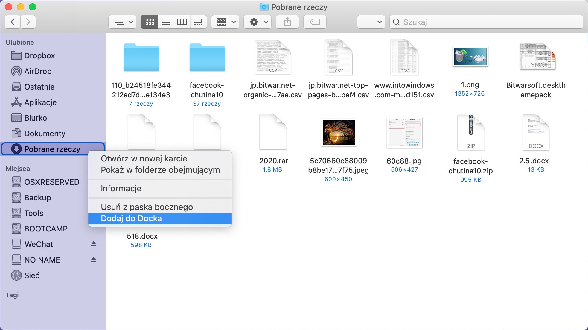 - Z menu kontekstowego wybierz „Dodaj do Docka”. Alternatywnie, możesz przeciągnąć folder „Pobrane” do Docku.