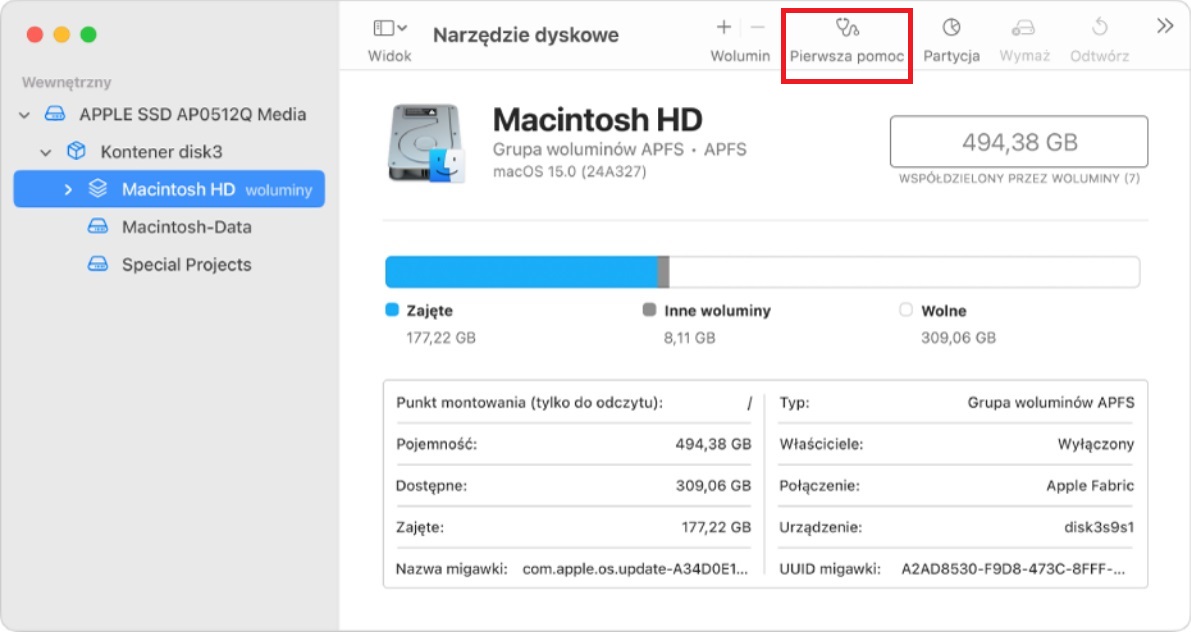 Metoda 3: Użycie funkcji „Pierwsza pomoc” w Macu