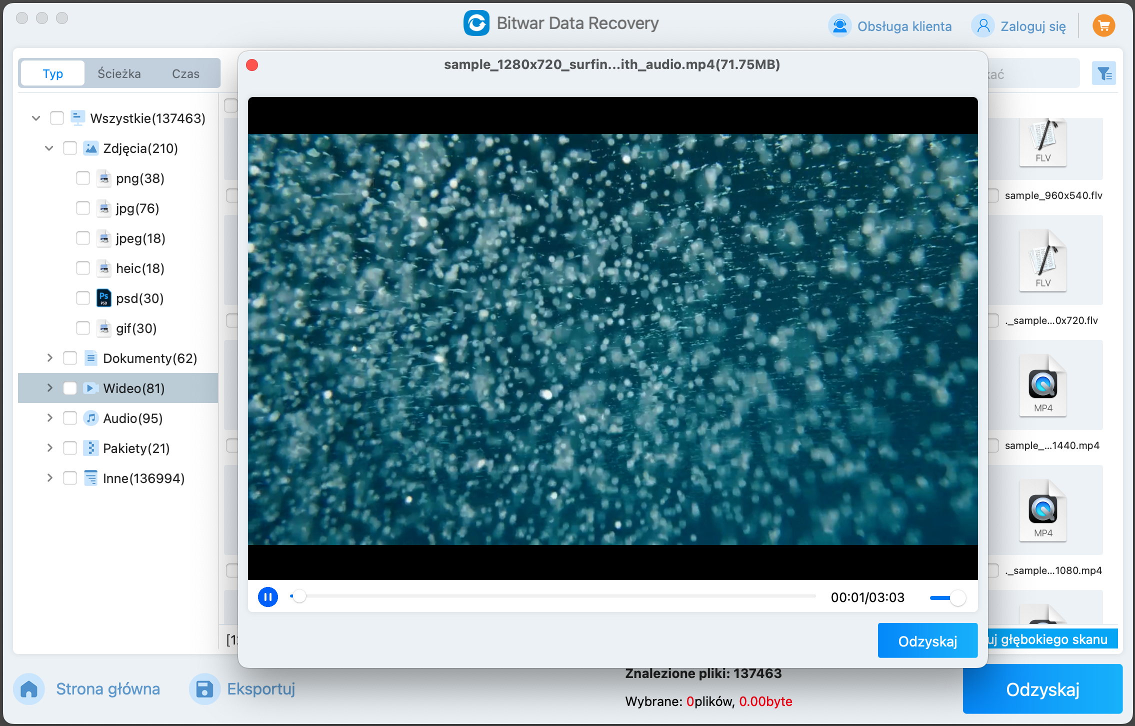 - Poczekaj, aż Bitwar Data Recovery przeskanuje pliki. Wszystkie znalezione pliki zostaną wyświetlone w oprogramowaniu. Kliknij plik, który chcesz odzyskać, aby go podglądnięcia.